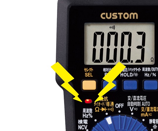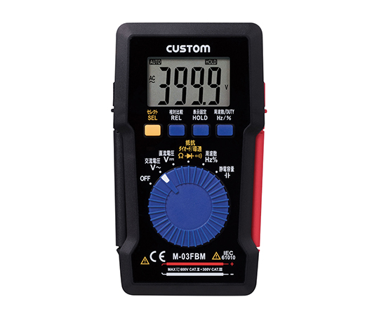 测定范围:电压(直流・交流)/4V~600V(4量程)、电流(直流・交流)/40mA/400mA(仅M-09FBM)、电阻/0~40MΩ、频率/5Hz~100kHz、电容/10nF~100uF